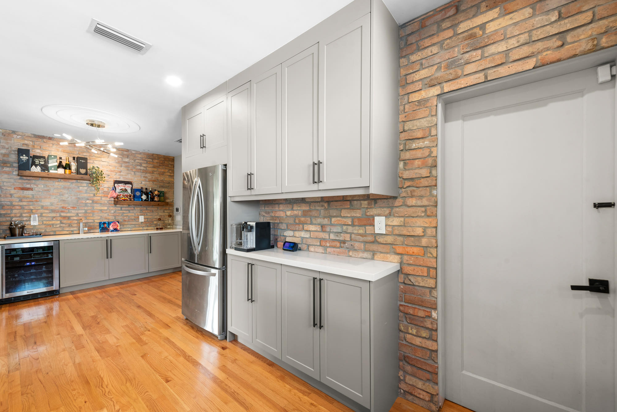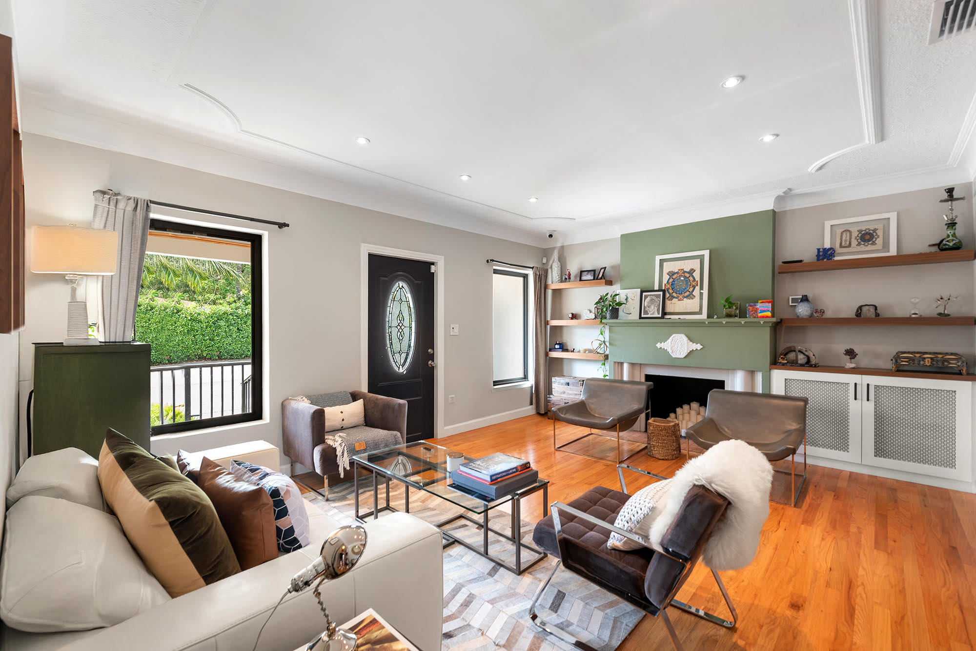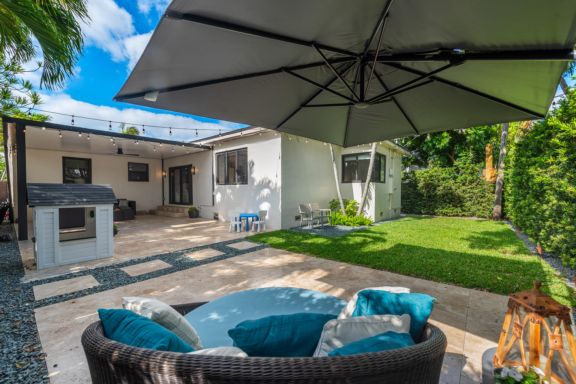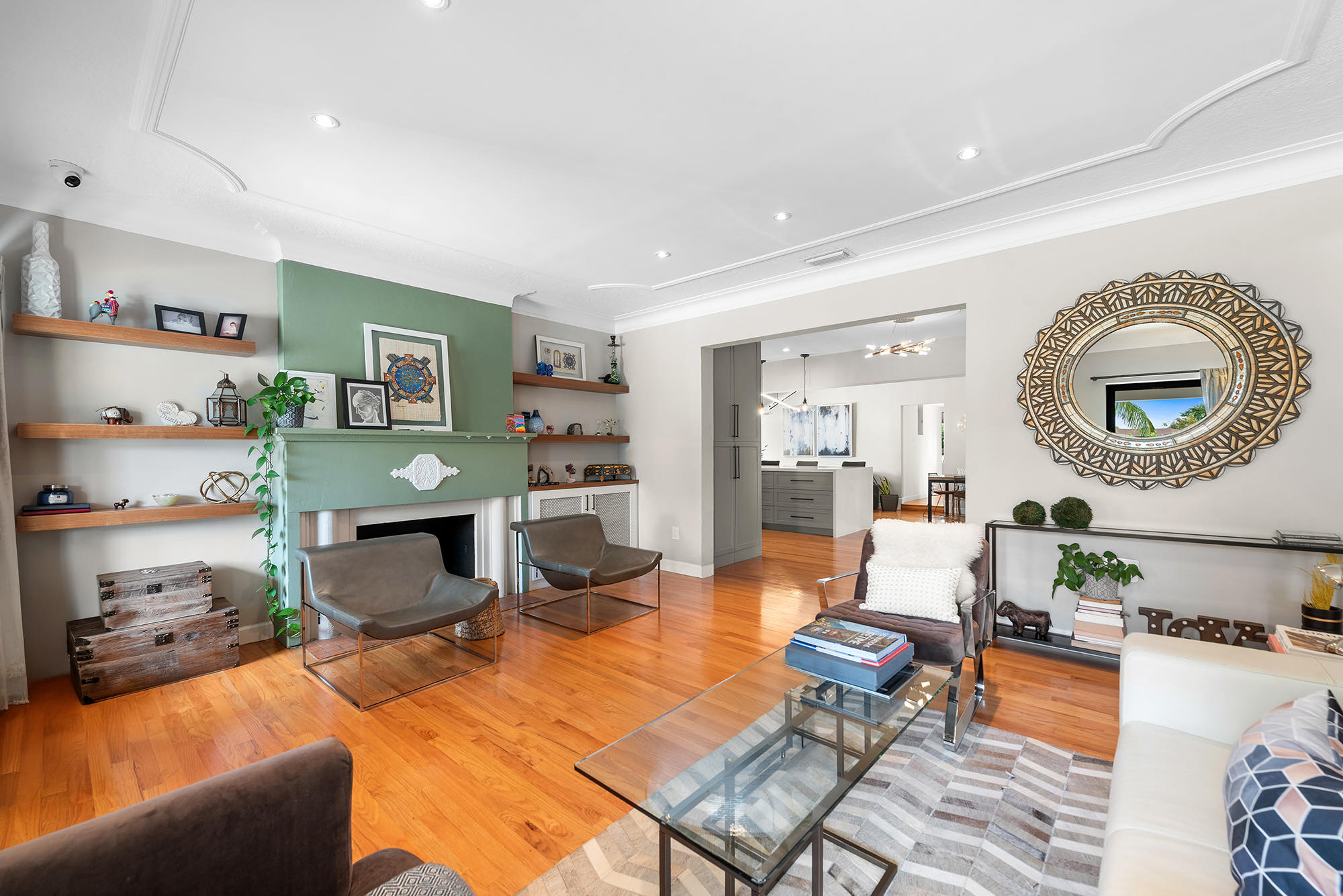 This delightful Miami property charmingly combines modern amenities with timeless characteristics. Set on a generous 5,610 sqft lot, the home features 1,907 sqft of inviting living space, including four bedrooms—one currently used as a cozy studio—with blackout curtains and elegant Roman shades. The kitchen is a culinary haven, showcasing quartz countertops, KitchenAid appliances, and a built-in wine fridge. Gather around the warm wood-burning fireplace, and enjoy impact glass windows and beautiful hardwood floors. The bar area, accented with authentic Chicago brick, offers extra storage for entertaining. Luxuriate in fully tiled bathrooms, including a front bathroom with a refined Kohler tub. Additional highlights include a security camera system and a crawl space throughout most of the house. The exterior features a charming covered patio and a landscaped yard. Don’t miss this remarkable opportunity!