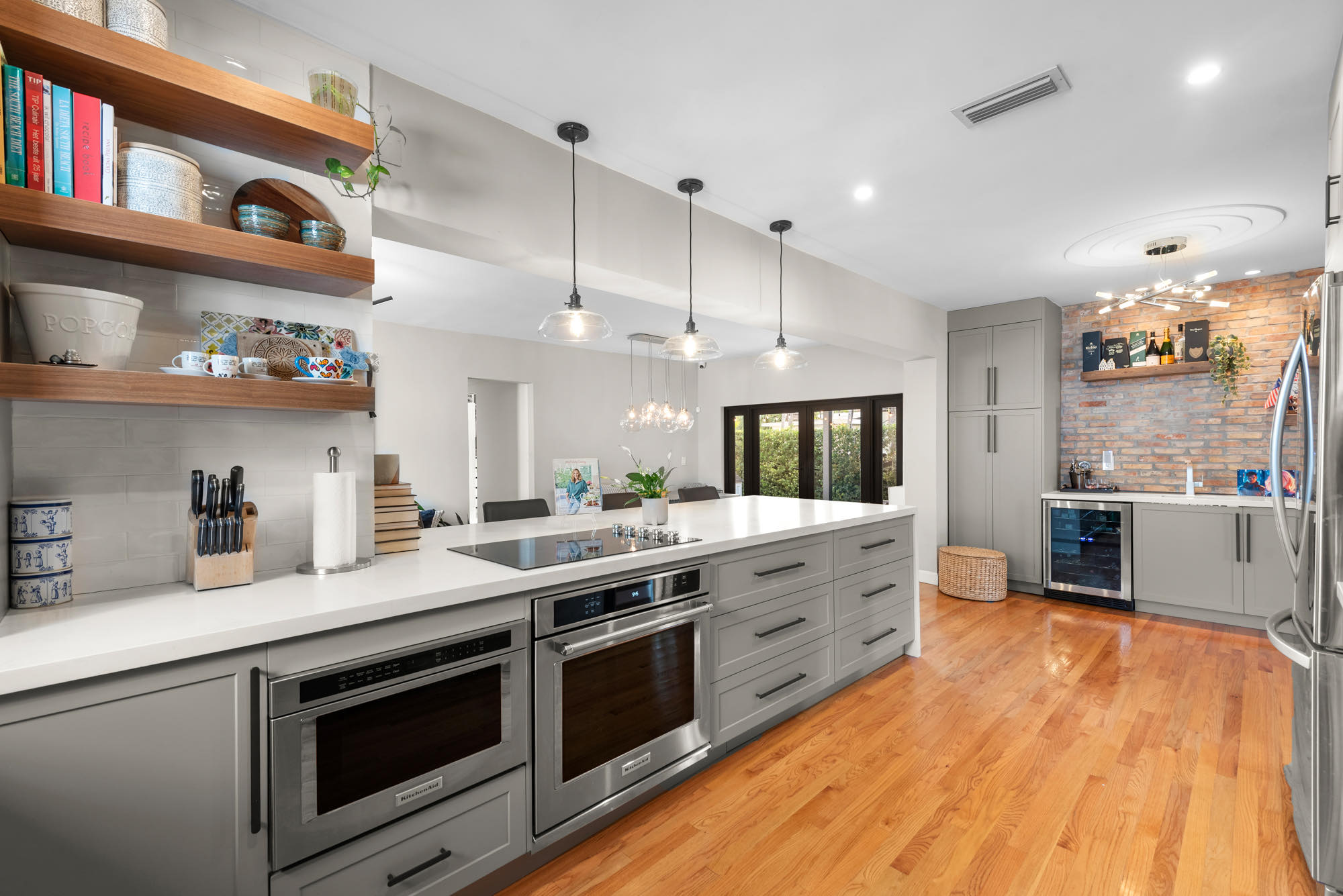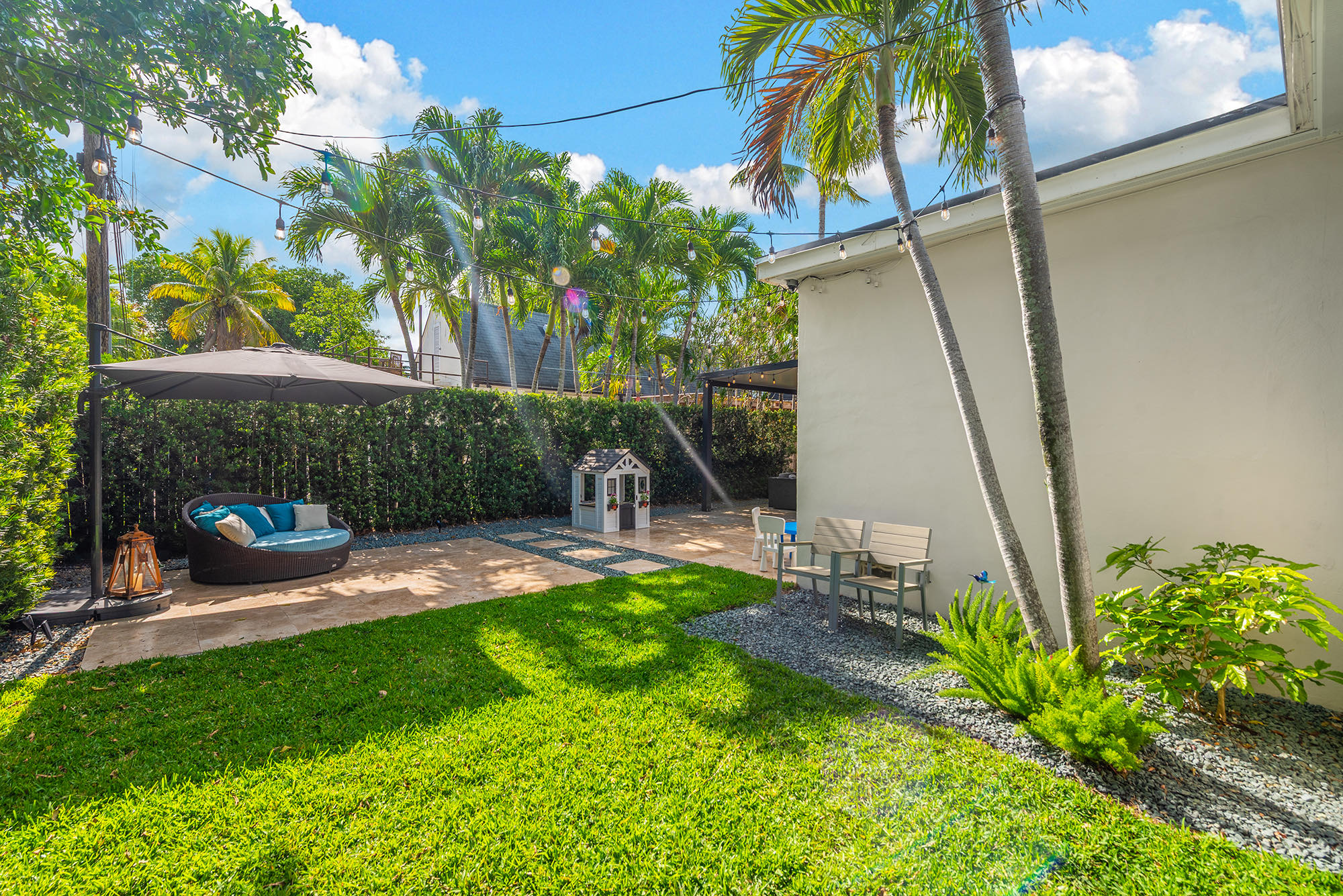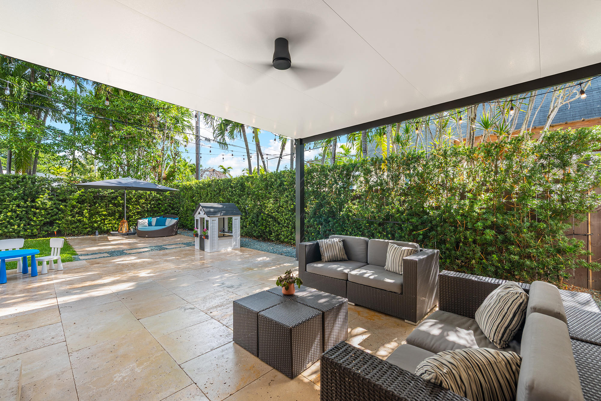 This delightful Miami property charmingly combines modern amenities with timeless characteristics. Set on a generous 5,610 sqft lot, the home features 1,907 sqft of inviting living space, including four bedrooms—one currently used as a cozy studio—with blackout curtains and elegant Roman shades. The kitchen is a culinary haven, showcasing quartz countertops, KitchenAid appliances, and a built-in wine fridge. Gather around the warm wood-burning fireplace, and enjoy impact glass windows and beautiful hardwood floors. The bar area, accented with authentic Chicago brick, offers extra storage for entertaining. Luxuriate in fully tiled bathrooms, including a front bathroom with a refined Kohler tub. Additional highlights include a security camera system and a crawl space throughout most of the house. The exterior features a charming covered patio and a landscaped yard. Don’t miss this remarkable opportunity!