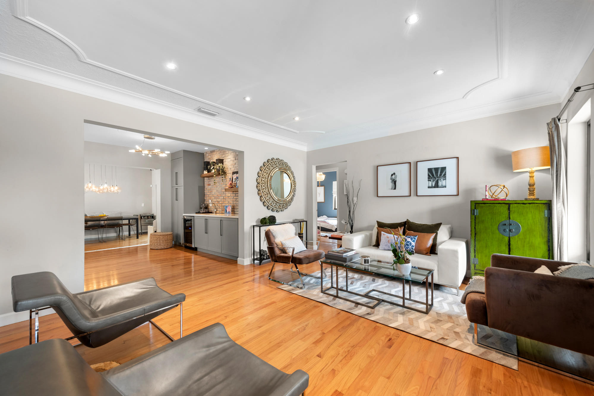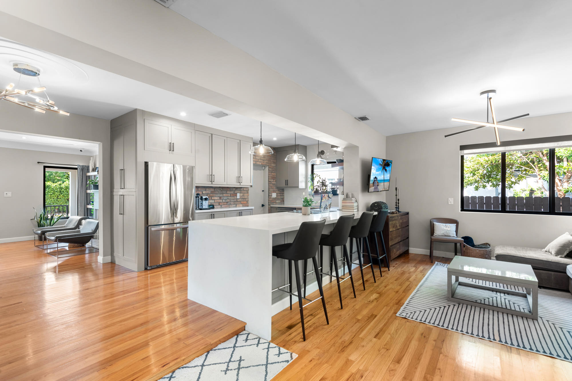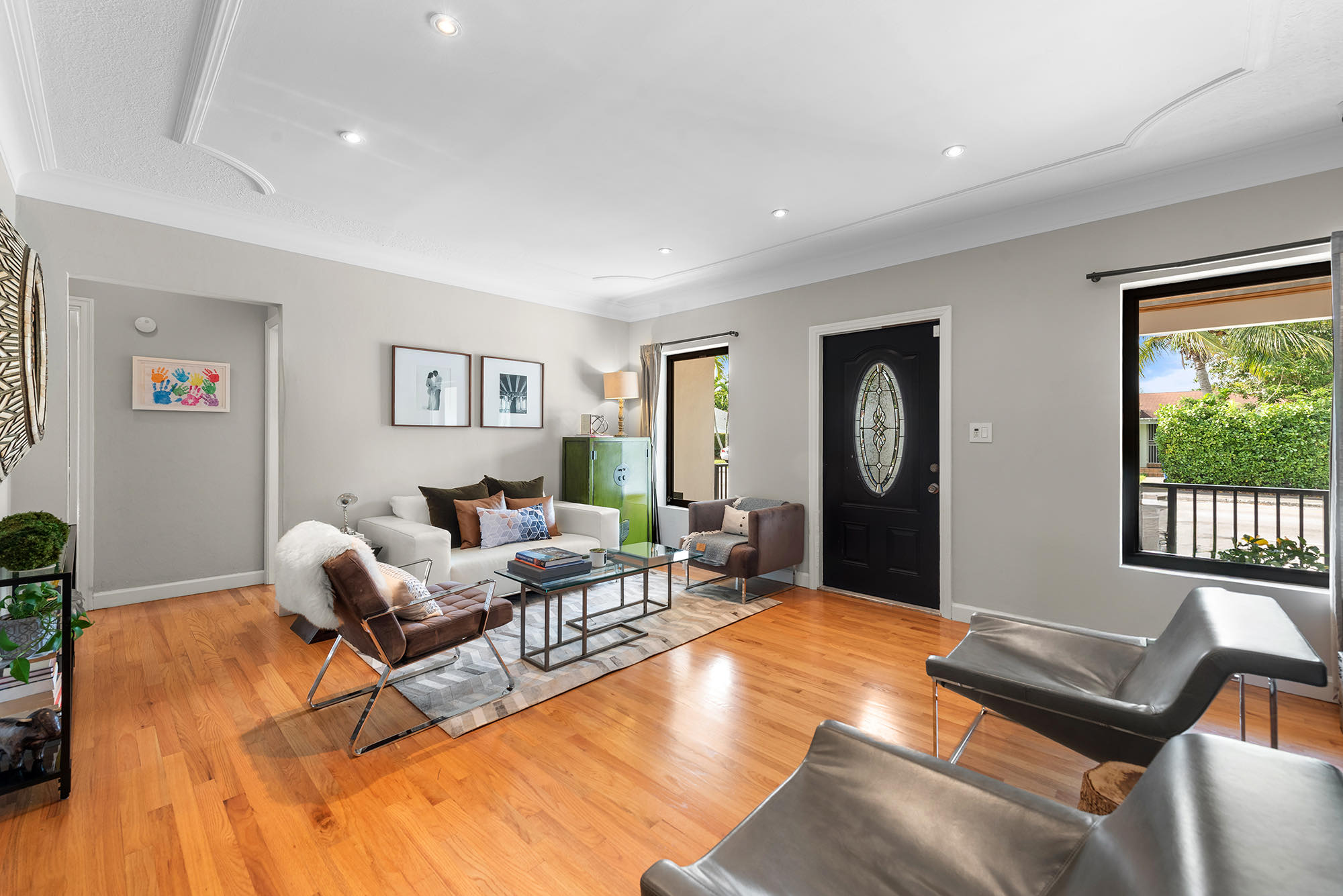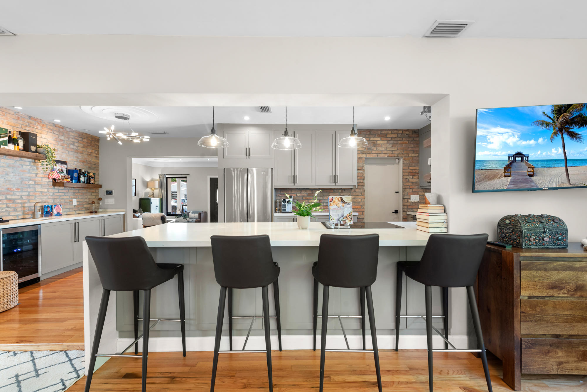 This delightful Miami property charmingly combines modern amenities with timeless characteristics. Set on a generous 5,610 sqft lot, the home features 1,907 sqft of inviting living space, including four bedrooms—one currently used as a cozy studio—with blackout curtains and elegant Roman shades. The kitchen is a culinary haven, showcasing quartz countertops, KitchenAid appliances, and a built-in wine fridge. Gather around the warm wood-burning fireplace, and enjoy impact glass windows and beautiful hardwood floors. The bar area, accented with authentic Chicago brick, offers extra storage for entertaining. Luxuriate in fully tiled bathrooms, including a front bathroom with a refined Kohler tub. Additional highlights include a security camera system and a crawl space throughout most of the house. The exterior features a charming covered patio and a landscaped yard. Don’t miss this remarkable opportunity!